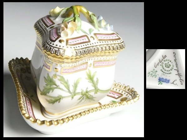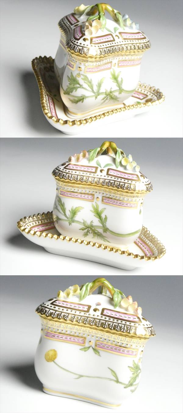 > ロイヤルコペンハーゲン 最高級シリーズ フローラダニカ 蓋付 トライアングル カスタード カップ&ソーサー シュガーポット n719
