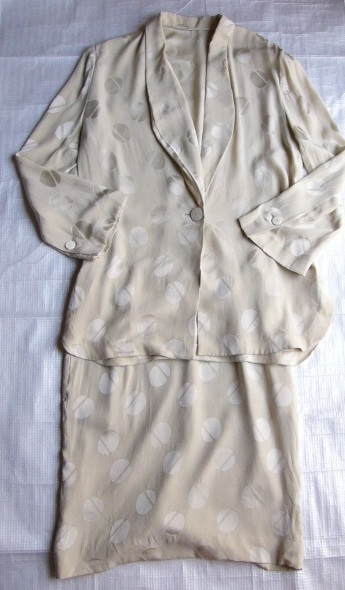 - 未使用◆アルファパージュ★シルク100%長袖ジャケットとスカートのスーツ★ 13号~15号くらい★大きいサイズ★ALPHAPAGE