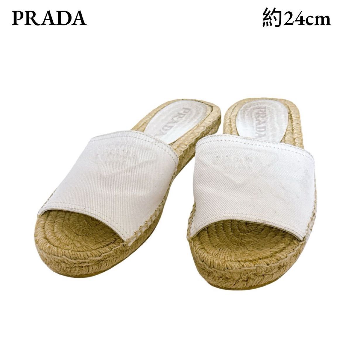 - PRADA プラダ エスパドリーユ スライド サンダル 靴 シューズ 37 24cm キャンバス アイボリー レディース ホワイト 白 ロゴ