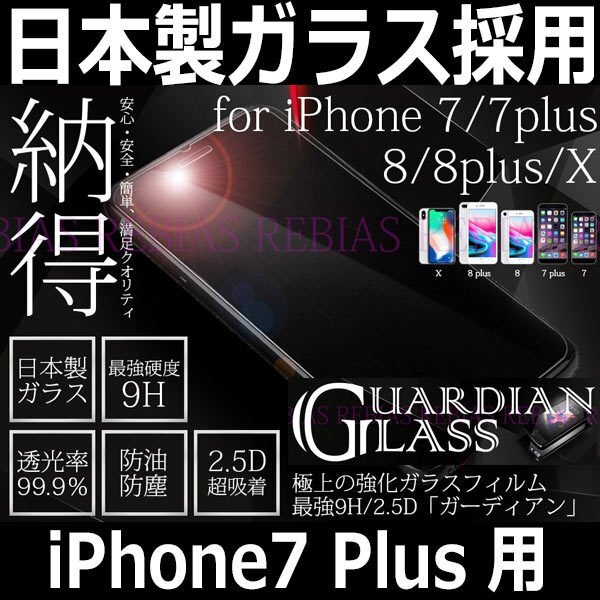 - 送料無料 日本製ガラス採用 HARVESコーティング 【iPhone7Plus】用 9H ガラスフィルム 保護フィルム 強化ガラス 破損防止 GUARDIAN GLASS