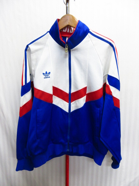 > アディダス 90sヴィンテージ トレフォイル刺繍ジャージトップ メンズXO XXL 青赤白 トリコロール三つ葉ロゴ トラックジャケット 10241