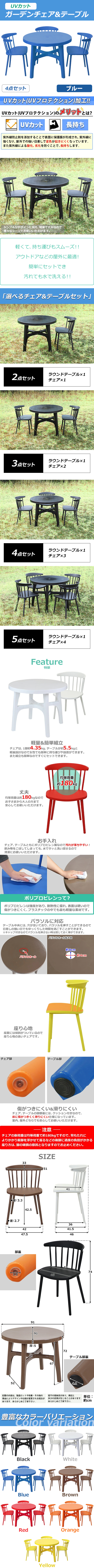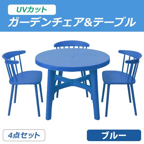- 送料無料 プラスチックチェア ガーデンチェア ガーデンテーブル ウィンザーチェア 4点セット UVカット ブルー テーブル&チェアー3脚