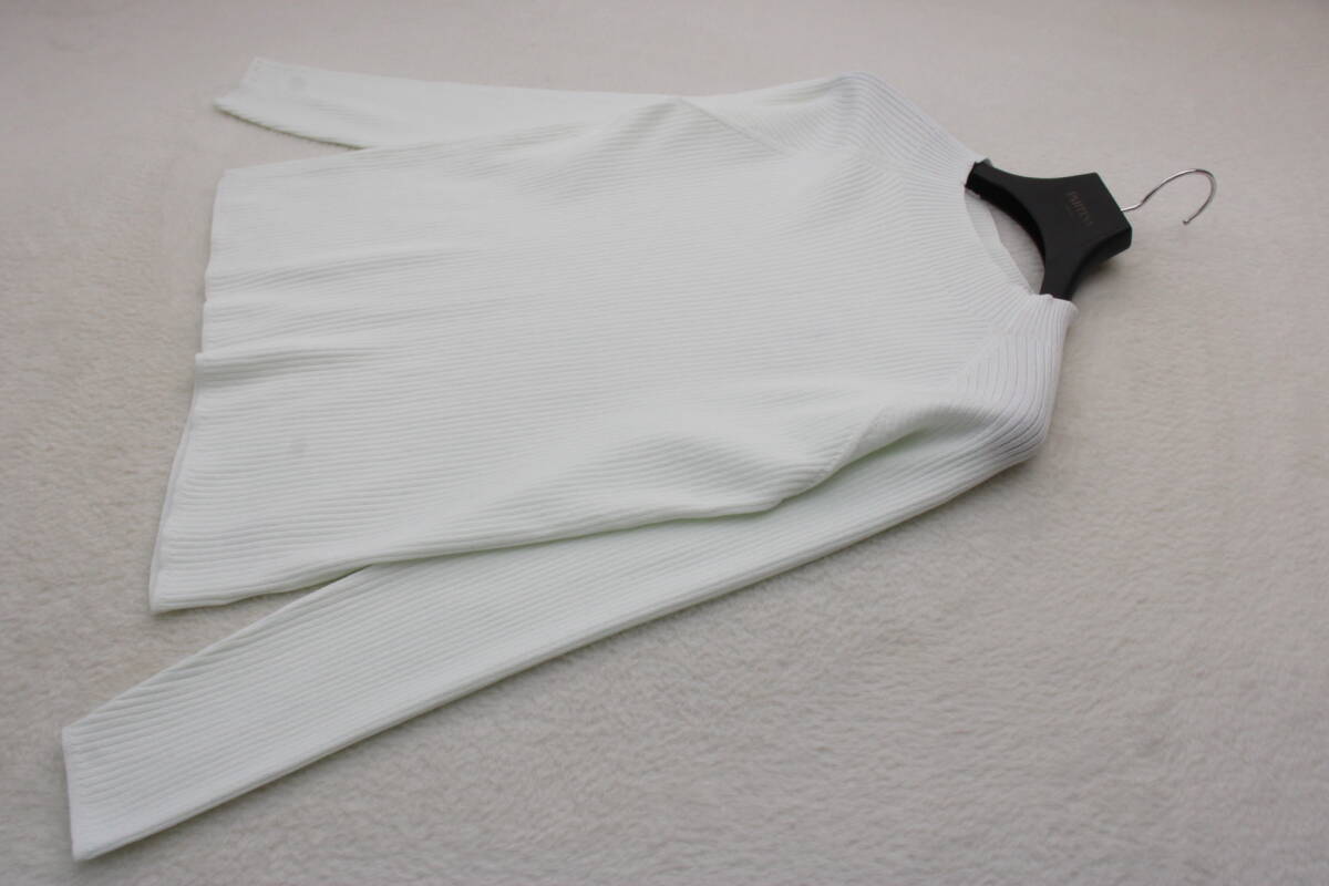 - 6011 新品 スーパーストレッチローネックリブカットソー オフホワイトFサイズ