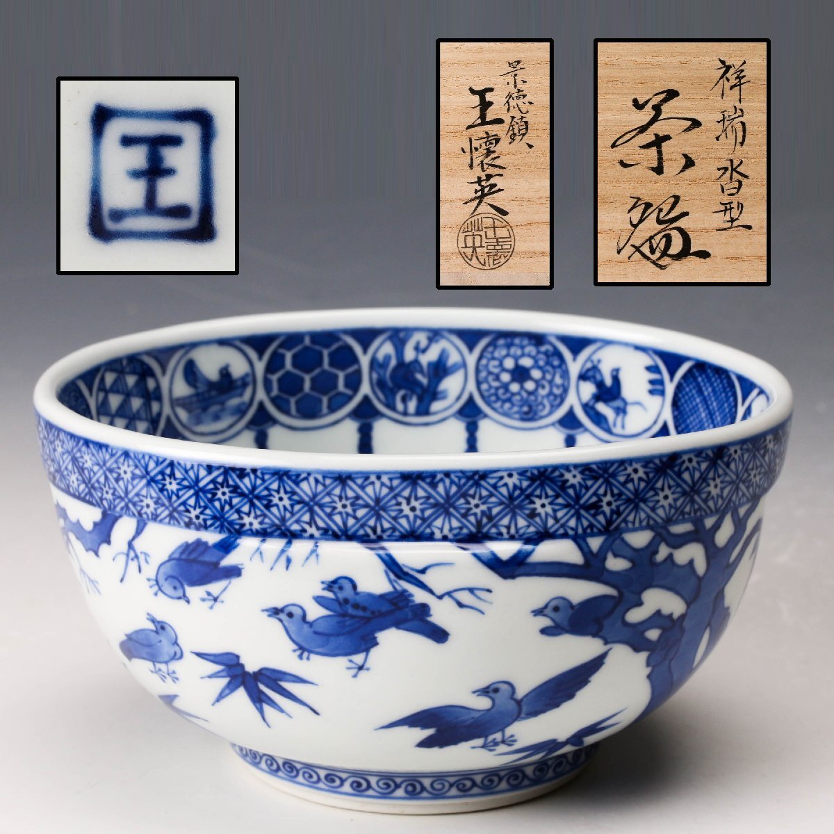 【佳香】王懐英 景徳鎮 祥瑞沓型茶碗 共箱 共布 茶道具 本物保証