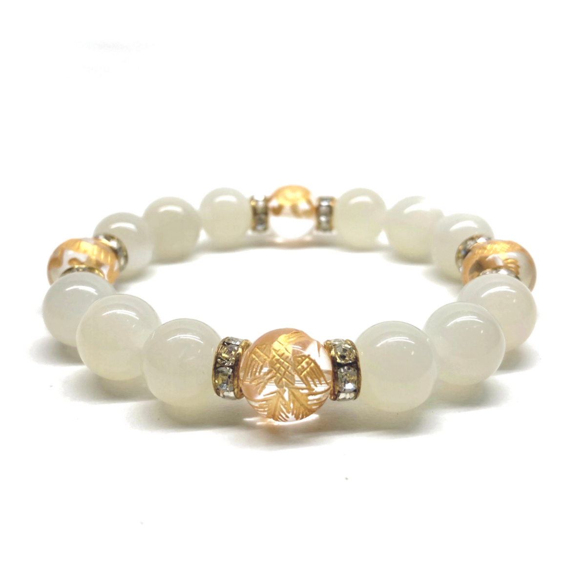 - 四神獣金彫水晶×ムーンストーン 12mm パワーストーン ブレスレット天然石 青龍 白虎 玄武 朱雀 運気上昇 金運 健康運 お守り 四神相応 G