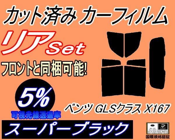 > カーフィルム スーパーブラック カット済み リアセット ベンツ GLSクラス X167 (s) スモーク ガラスフィルム 167923 167933 167985 167986