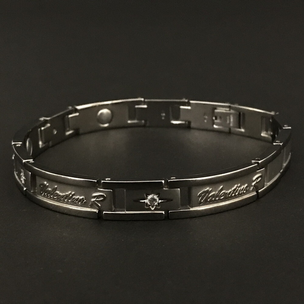 - 1円 美品 VALENTINO ROLENTA バレンチノロレンタ SS ロゴ ラインストーン ブレスレット バングル アクセサリー シルバー /ZX2039