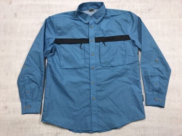 - HOLIDAYOUT ホリデーアウト アウトドア リップストップ テック 胸ポケ ユーティリティ 裏地メッシュ 長袖シャツ メンズ ボタンダウン L 青