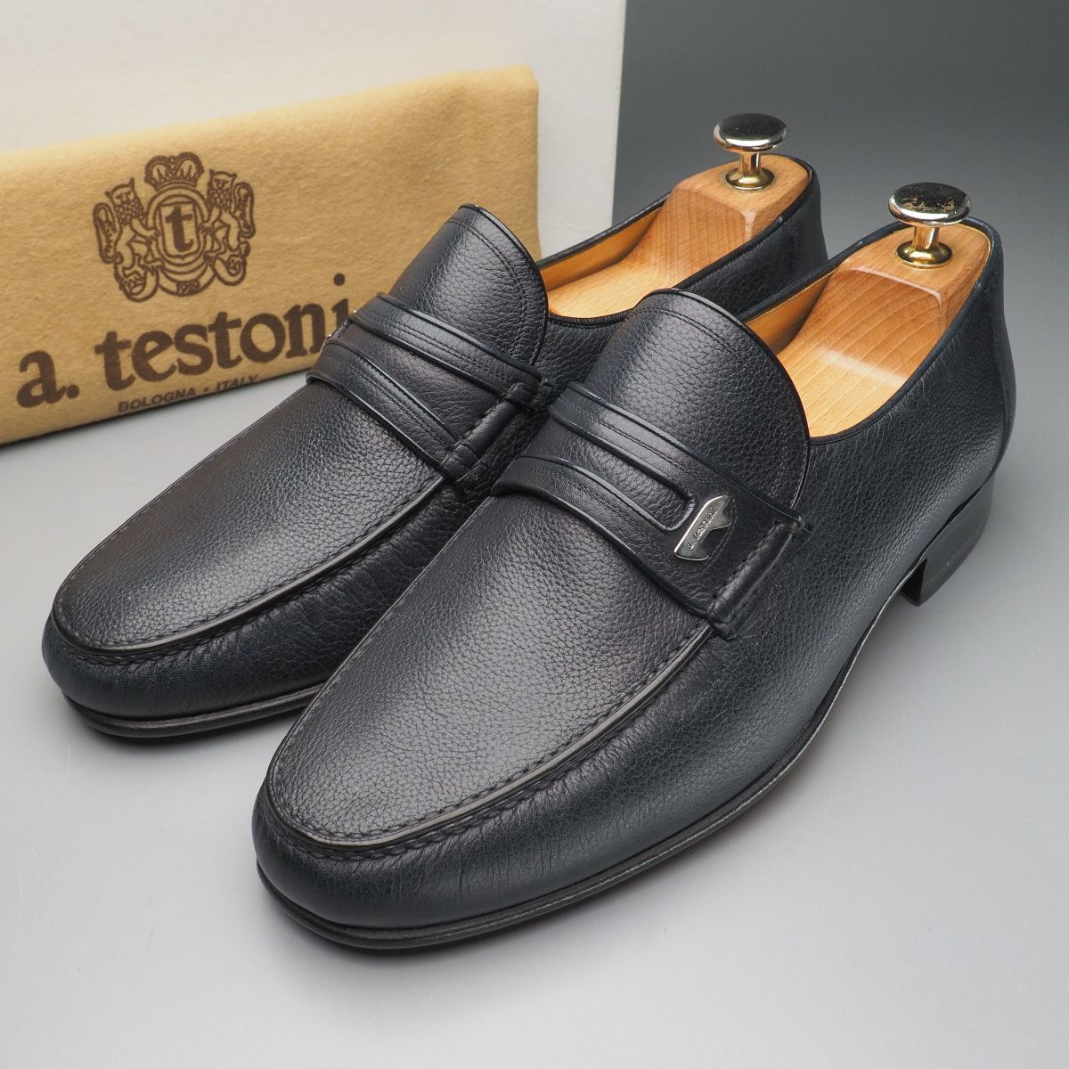 - MI2263//未使用*ア テストーニ/a.testoni*メンズ6.5H/コインローファー/ペニーローファー/レザースリッポン/革靴/黒/ブラック