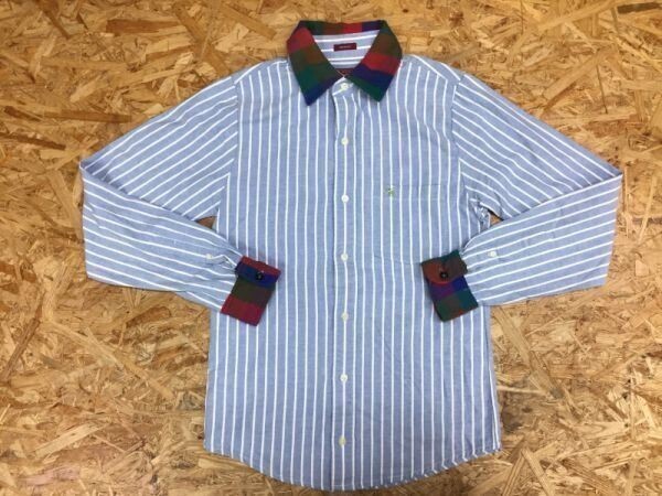 > リメイク品! アバクロンビー&フィッチ Abercrombie&Fitch チェック × ストライプ 長袖シャツ メンズ コットン100% L 青