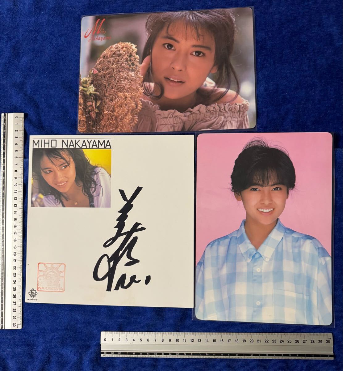 - 【レア?】中山美穂 直筆サイン色紙&下敷き2枚 80年代女性アイドル ライトメロウ シティポップ DISCO 昭和歌謡 ユーロビート J-POP