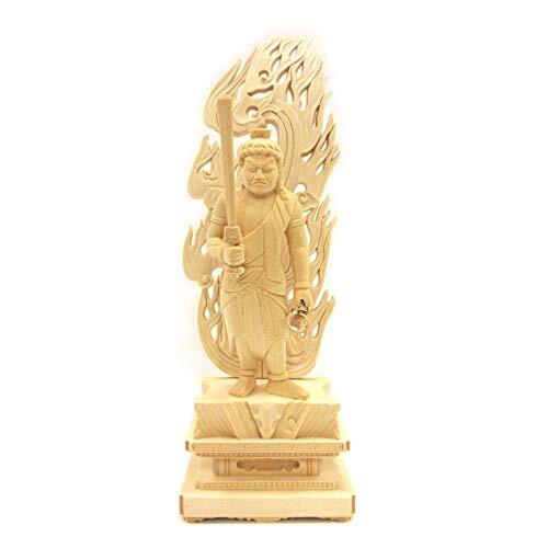 - 栗田こだわり仏像 【明王】 不動明王立像5.0寸(総高31.5cm、幅12cm、奥行き7.5cm)桧木製高級木彫り 火炎光背四角岩台