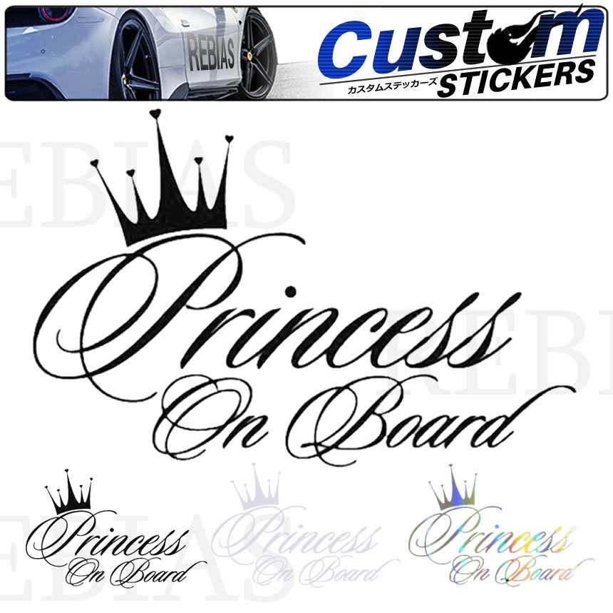 - 送料無料 ステッカー PRINCESS ON BOARD 【ホワイト】 プリンセス 王族 皇族 お姫様 シール 車 バイク