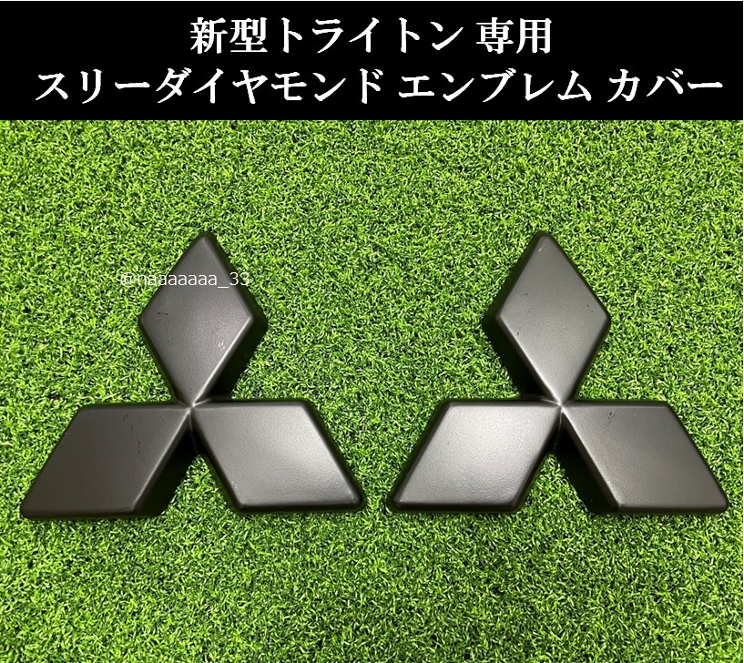 - 三菱 新型 トライトン エンブレム カバー ガーニッシュ つや消し黒 前後セット LC2T MITSUBISHI TRITON GLS GSR マットブラック