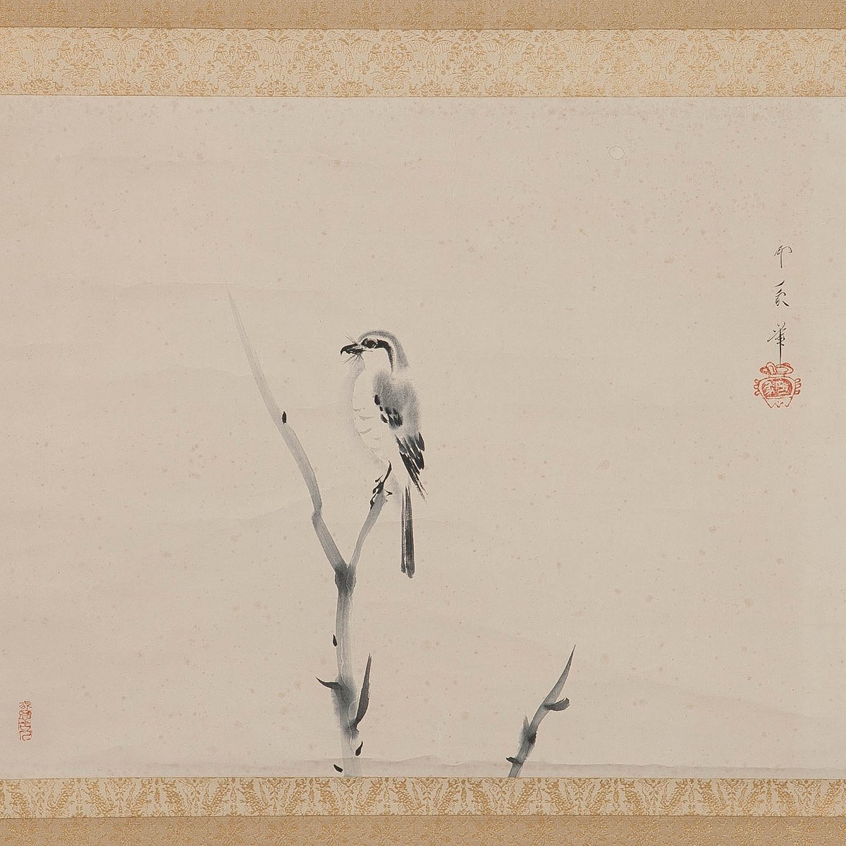 “商品説明の『続きを見る』もしくは携帯端末アプリの『もっと見る』から追加画像をご覧ください” 商品説明 品名 堂本印象 『百舌鳥』 紙本 墨 掛軸 寸法 軸・・・縦131cm 横62.5cm 内・・・縦37cm 横47cm ※寸法に若干の誤差が生じます。ご承知下さい。 状態 本紙:シミ、シワ 表具:シミ、シワ、ヤケ 箱:無 略歴 堂本印象1891-1975 大正-昭和時代の日本画家。明治24年12月25日生まれ。京都出身。本名は三之助。西山翠嶂にまなぶ。大正10年帝展で「調鞠図」が特選、15年「華厳」が帝国美術院賞。昭和11年母校京都市立絵画専門学校(現京都市立芸大)の教授。寺院の障壁画などを数おおく制作したが、戦後は抽象画も手がけた。芸術院会員。36年文化勲章。昭和50年9月5日死去。83歳。 備考 本品は印刷ではなく肉筆です。 補足 送料 ■ゆうパック100サイズ(詳細は以下の〈配送方法〉を参照して下さい) ※形状・性質が異なるものは同梱をお断りさせていただく場合がございます。同梱の場合、サイズ変更により表示される送料の金額を修正させていただく場合がございます。予めご了承いただきますようお願い致します。 ※2023年10月より日本郵便の郵便価格改定により、配送料を改訂させていただきます。何卒ご理解の程よろしくお願い致します。