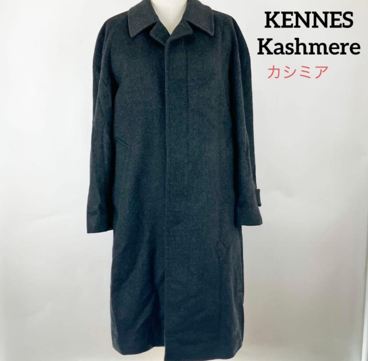- カシミア KENNS Kashmere カシミヤ コート 'チャコール Sサイズ ブラック ロングコート カシミヤ100 ビジネス コート ウール ステンカラー
