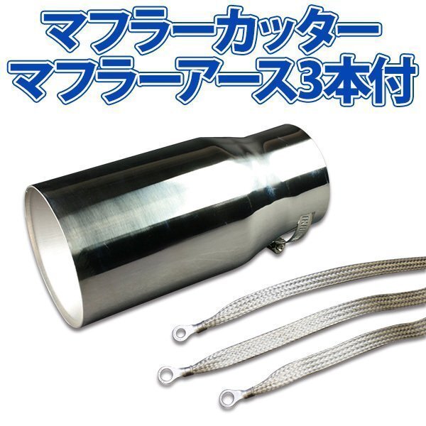 > 在庫品 マフラーカッターセット (マフラーアース3本付) トゥデイ シングル 大口径 シルバー AX289 汎用 ステンレス アーシング 旧車