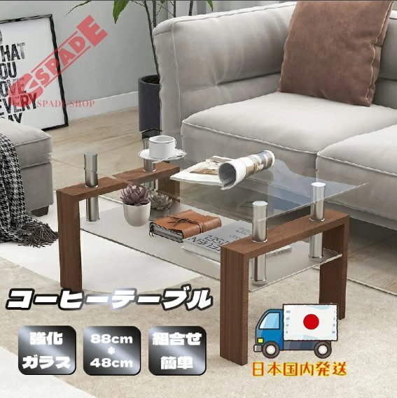 - 【国内発送】ガラステーブル コーヒーテーブル 幅88cm 強化ガラス天板