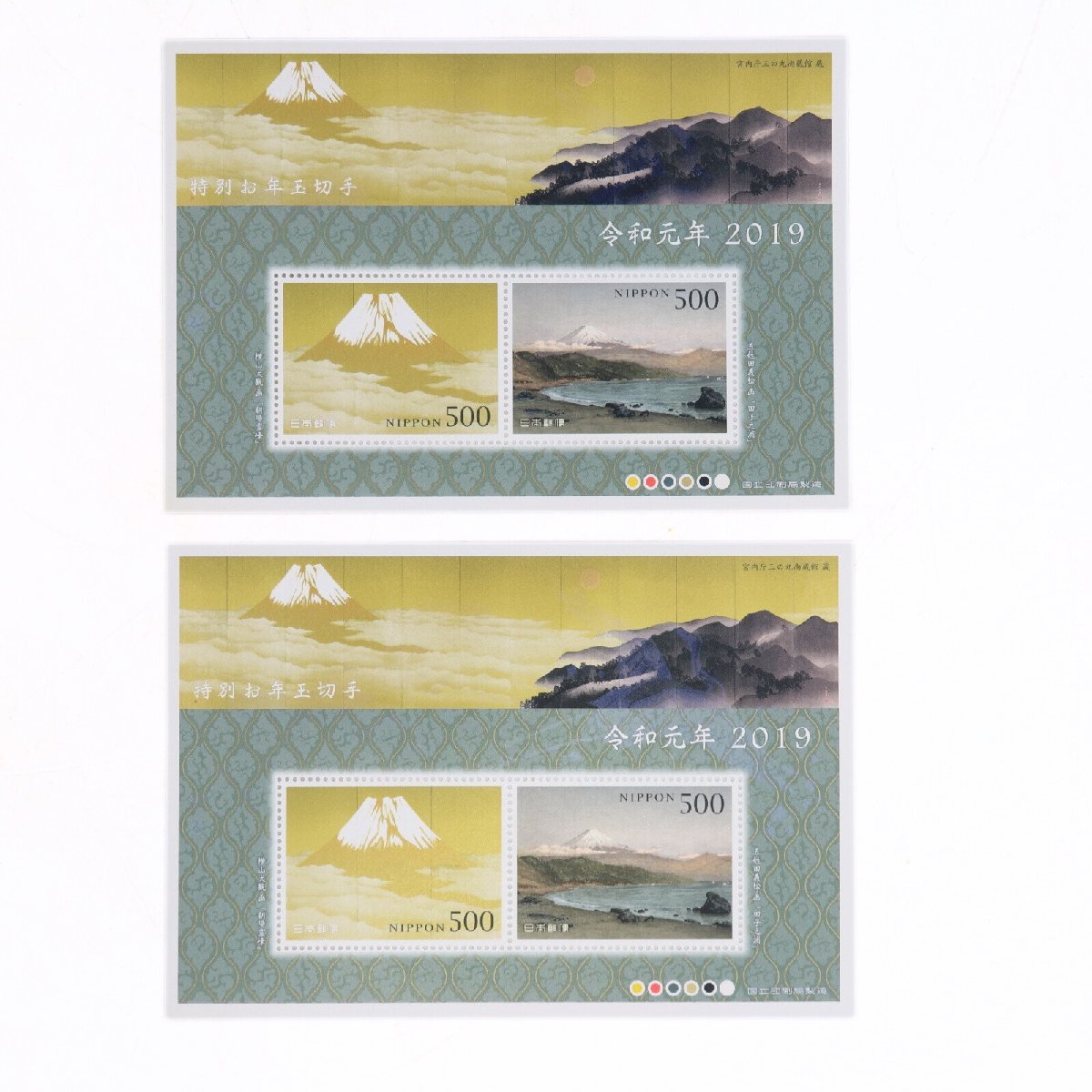 > 12916-O-送料無料 令和元年 2019年 特別お年玉切手 500円×2枚 2シート 額面 2000円 記念切手 郵便切手 小型シート 未使用