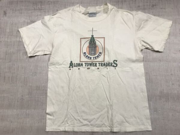 - Custom Company製 USA製 ALOHA TOWER TRADERS ハワイ HAWAII スーベニア アメカジ オールド 90s 古着 半袖Tシャツ カットソー メンズ M 白