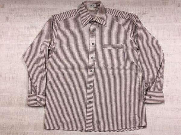 - ロック ROCK レトロ オールド 古着 ストライプ長袖フランネルシャツ メンズ ウール100% 日本製 M ピンク