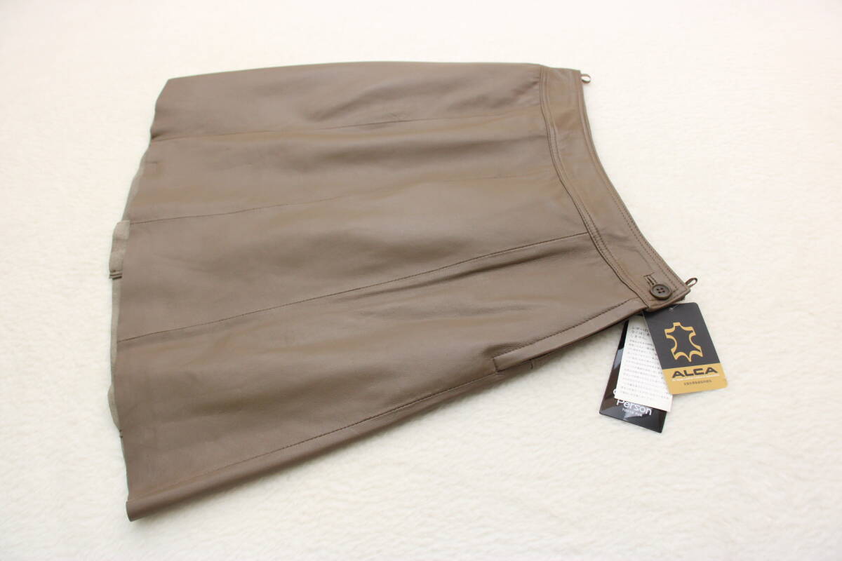 - 6131 新品タグ付き 高級羊革レザースカート カーキ11号