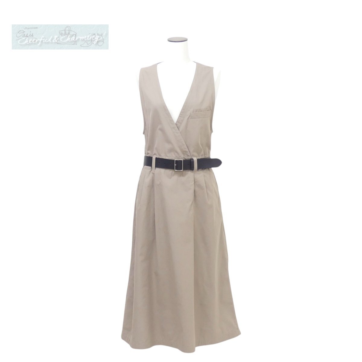 - MARGARET HOWELL ハイツイストコットンツイツドレス 0 ベージュ/レザーベルト ブラック ’23年商品