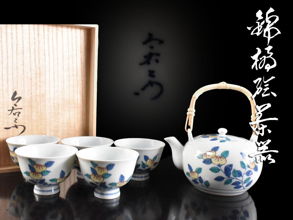 > 【雲】某名家収蔵品 有田 十四代 今泉今右衛門 錦橘絵付 煎茶器 急須 煎茶碗5客 在銘 共箱 古美術品(煎茶道具 懐石料理道具)Y7222 LTUbgfr
