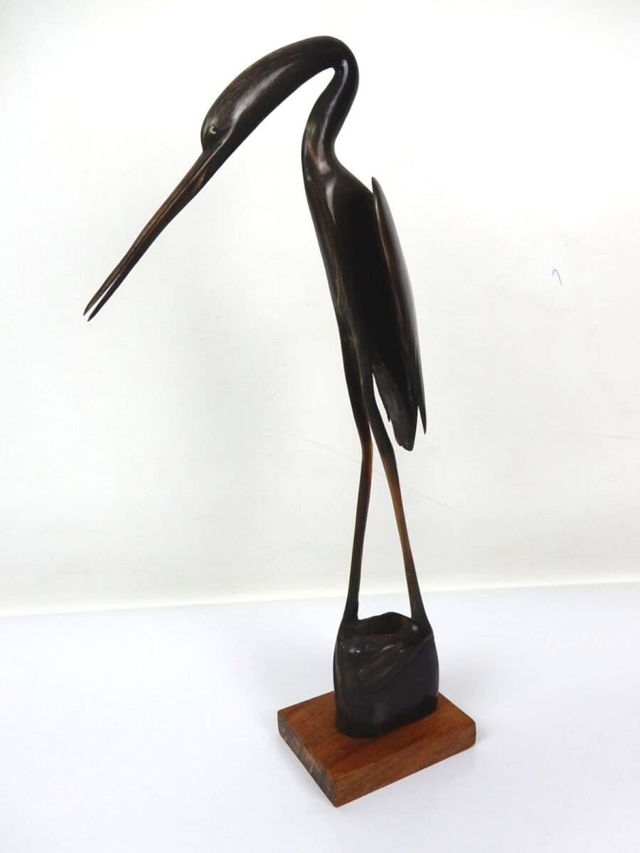 - 【水牛角?細工】 細密彫刻 鷺の置物 高さ 約37cm程 オブジェ インテリア置物 中古品 JUNK 現状渡し 一切返品不可で!