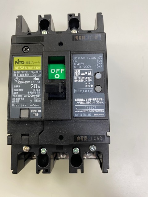 - 日東 漏電ブレーカーGE53A 3P20A 30mA