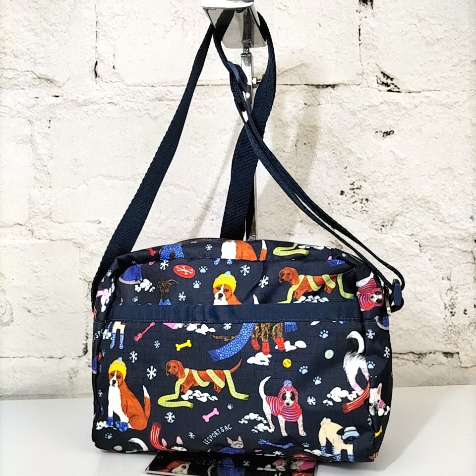 - 【 LeSportsac 】 レスポートサック 犬 ドッグ アニマル 総柄 ショルダー / クロスボディ バッグ 斜め掛け レディースバッグ 紺 ネイビー A