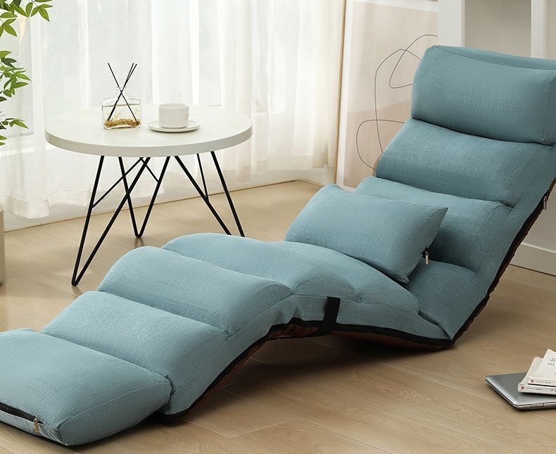 - 推薦★座椅子 リクライニングソファ パーソナルチェア 折りたたみ 全長205cm 低反発 着脱可能 寝椅子 リラックス リクライニング式 ブルー