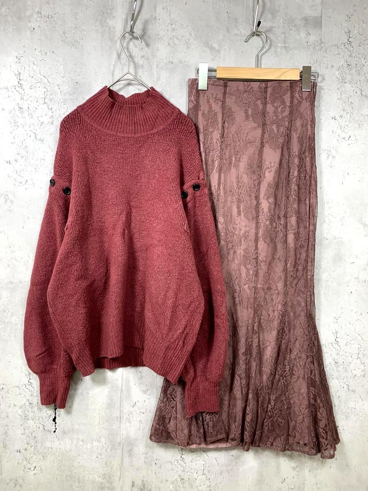 > snidel スナイデル SWNO215050 定価19800円 ニットプルオーバー×マーメイドスカートセットワンピース セットアップ sizeONE/赤 ■■