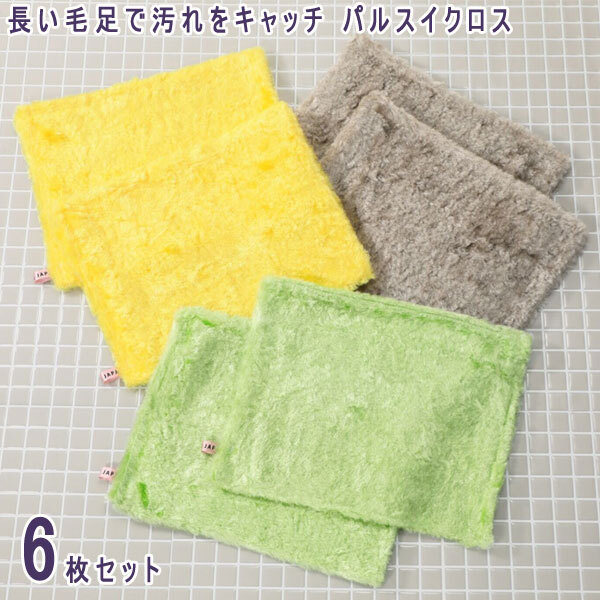- 送料300円(税込)■lc094■長い毛足で汚れをキャッチ パルスイクロス 特別6枚セット キウイミックス 5537円相当【シンオク】