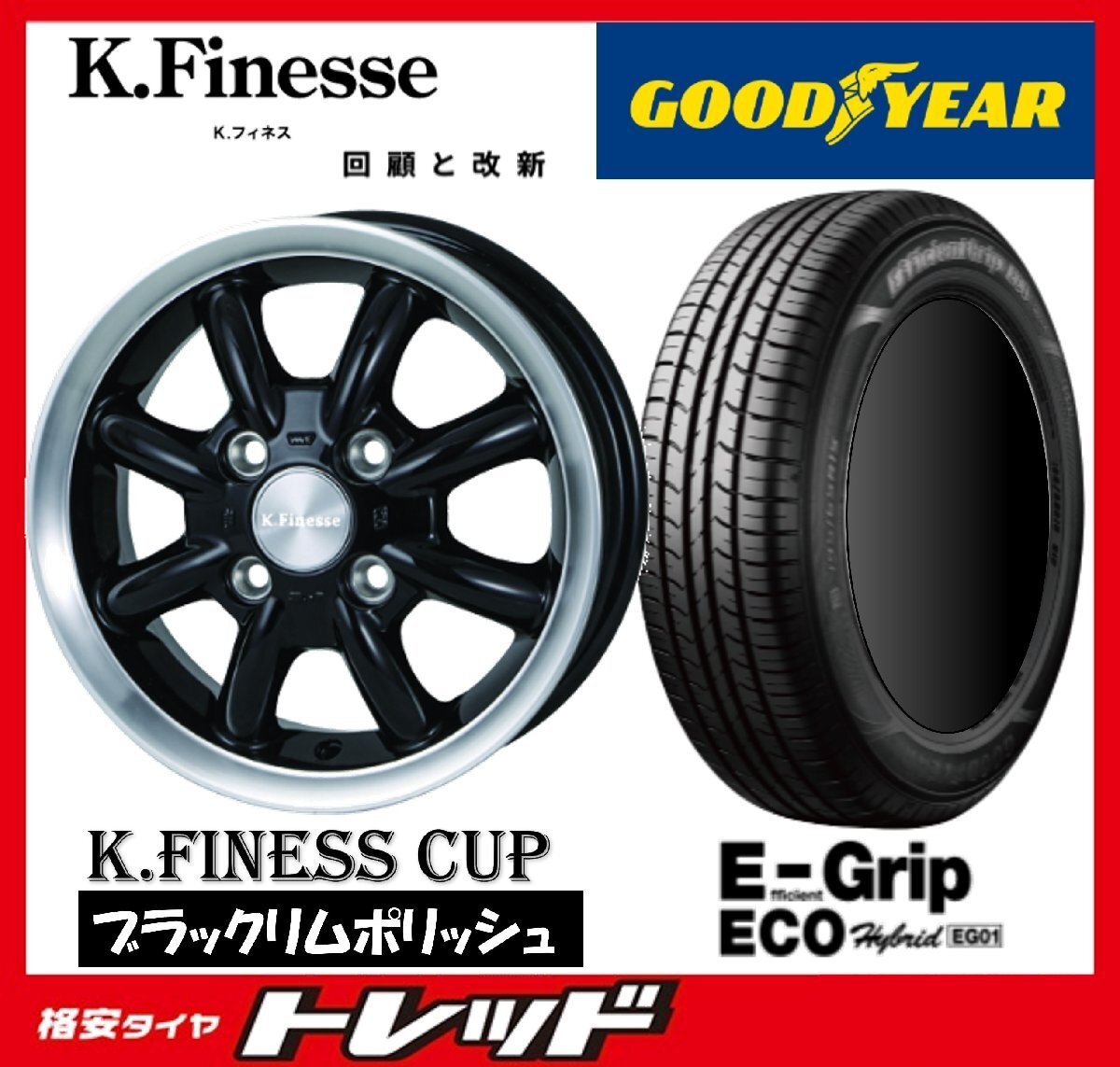 - 数量限定 2023年製)新横浜師岡店 新品タイヤアルミ4本set K.フィネス CUP 14インチ4.5J4穴100+45 グッドイヤー EG01 165/65R14