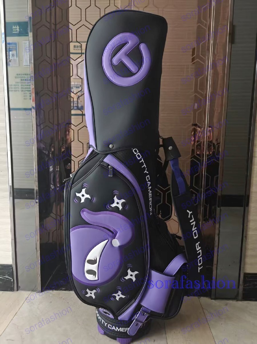 > 美品 スコッティ キャメロン タイトリスト ゴルフバッグ キャディバッグ 9型 約5kg 6分割 合成皮革 ブラックx紫サークルT