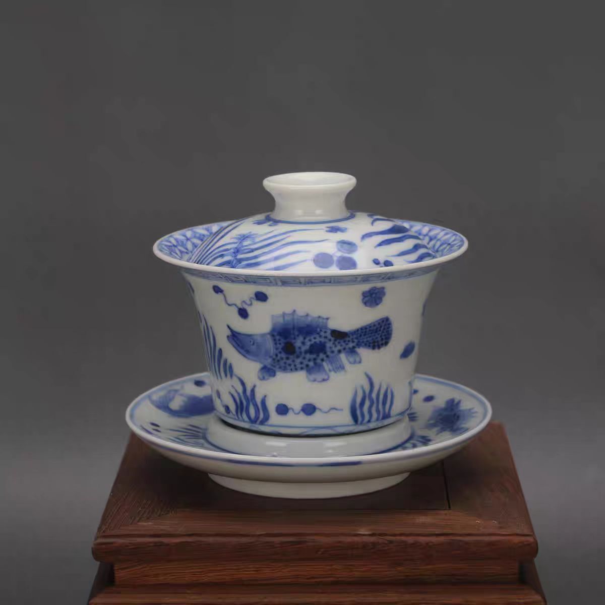 - 清時代 乾隆年製款 古陶磁器 青花 穿枝蓮紋 盖碗 茶盞 茶具 茶道具 時代物 古董品 骨董 旧家蔵出し 唐物 中国古玩 古美術品