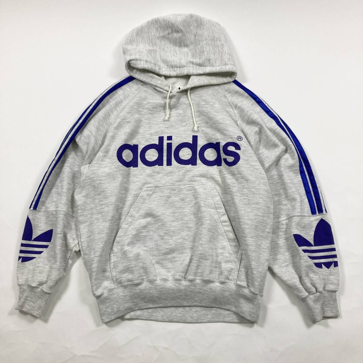 - ★Vintage adidas アディダス パーカー スウェット ロゴ トレフォイル トップス デサント社製 日本製 グレー系 サイズ0 メンズ 0.6kg