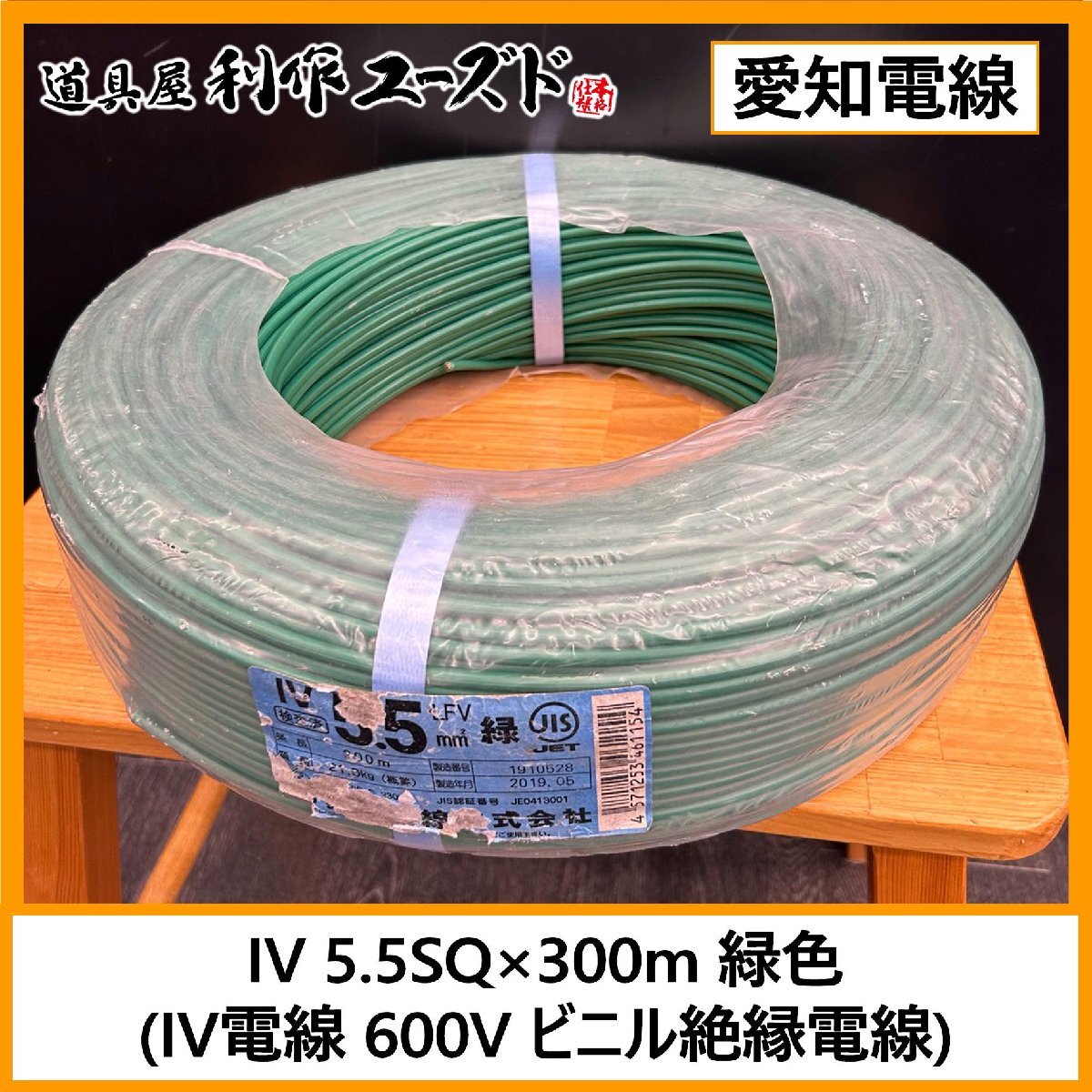 - 【中古買取/未使用品】愛知電線 IV 5.5SQ×300m 緑色『IV電線 600V ビニル絶縁電線』『規格:JIS C 3307』『屋内配線、電気機器用配線』