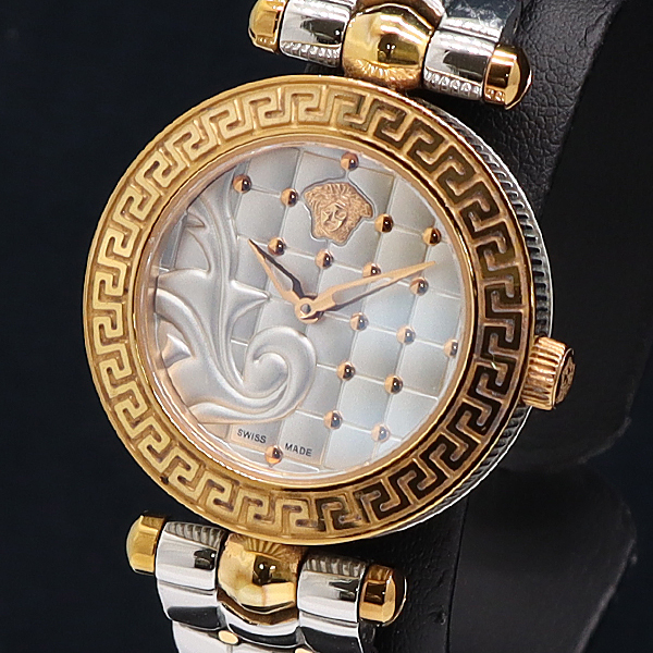 > 1円 稼働 良品 ヴェルサーチ VQM QZ シルバー文字盤 レディース腕時計 9274100 10KHT KMR