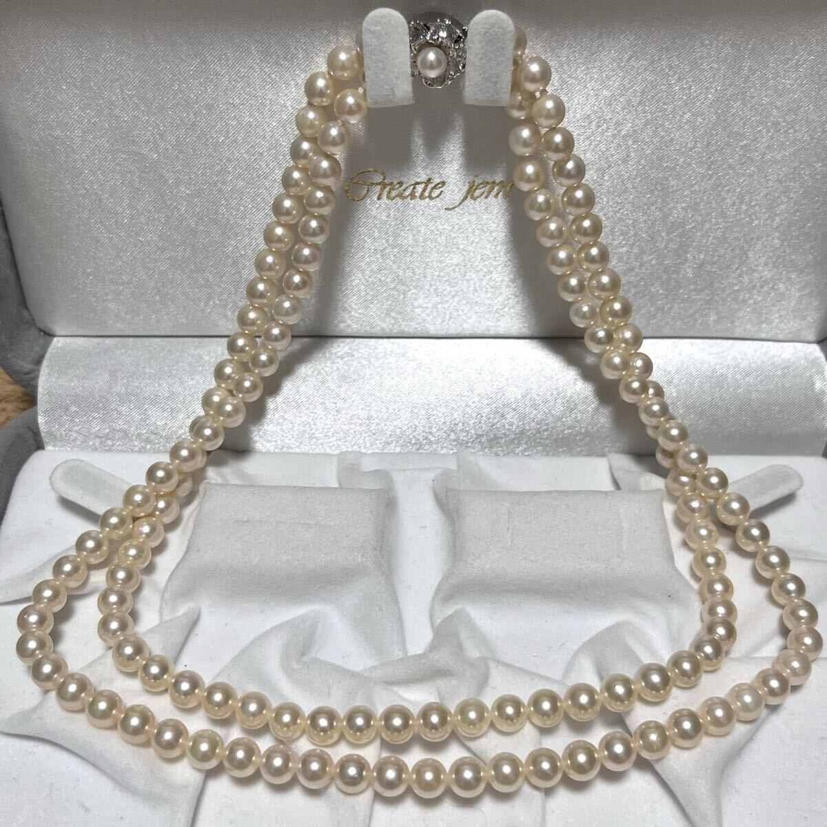- 豪華絢爛!! 2連 照り強 アコヤ真珠 6.0-6.5mm 42-44cm ホワイト ネックレス 本真珠 アクセサリー SILVER pearl あこや パール