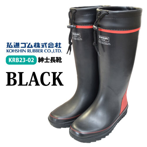 - 弘進ゴム 作業長靴 メンズ 【 KRB23-02 】 紳士長靴 ■Sサイズ(24.0~24.5cm)■ブラック色 フード付 屈曲性 補強
