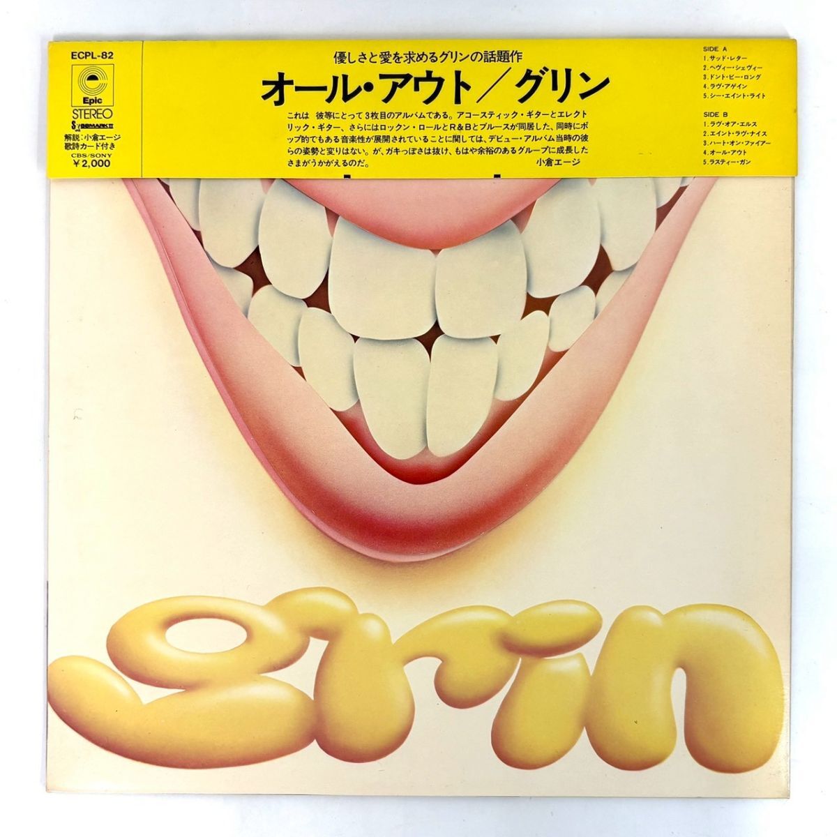 > R1016-37【国内盤 帯付き LP】グリン GRIN オール・アウト ALL OUT ECPL-82 1972年 インサート付き レコード 12inch インチ 動作未確認