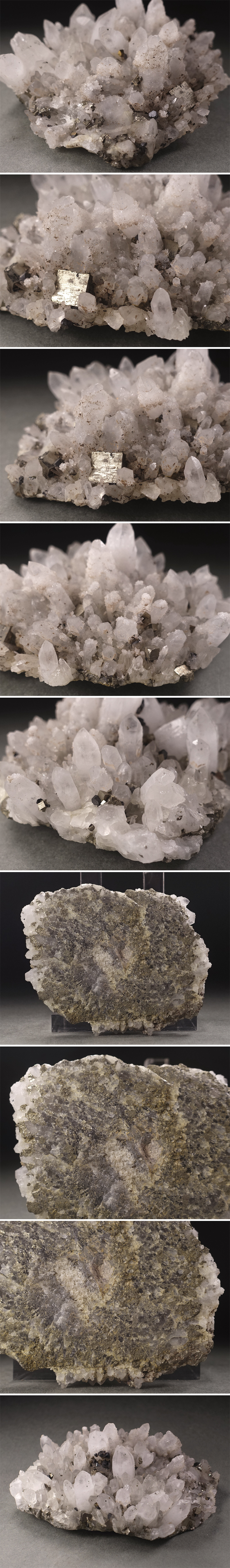 > ∇花∇天然水晶原石 クォーツ・クラスター パイライト(黄鉄鉱)共生 幅10.9×8.5cm/重量315g 鉱物 天然石 宝石置物 群晶 A