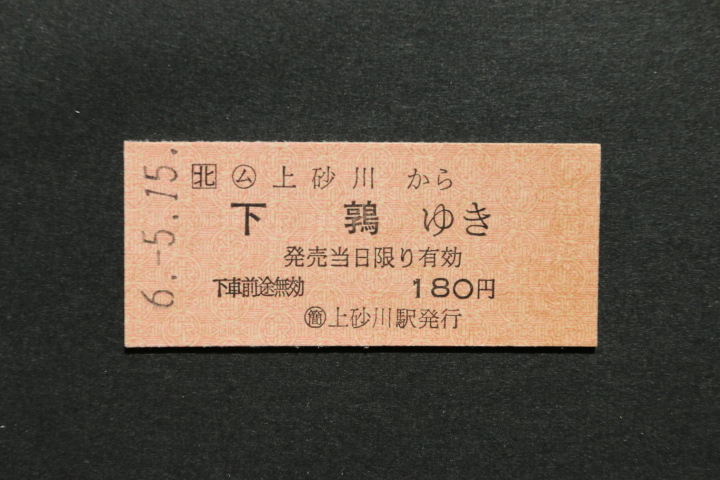 - JR北 乗車券 上砂川から 下鶉ゆき 180円