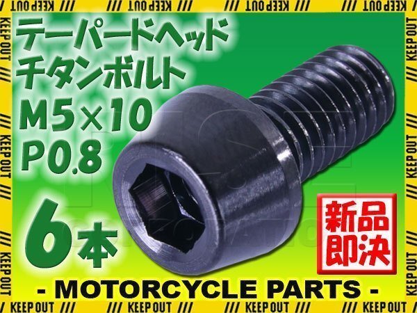 - メール便OK!M5×10 P0.8 チタンボルト 6本セット 5mm 10mm ピッチ0.8 ブラック テーパー ボルト バイク 車 自転車 自動車 ロードバイク
