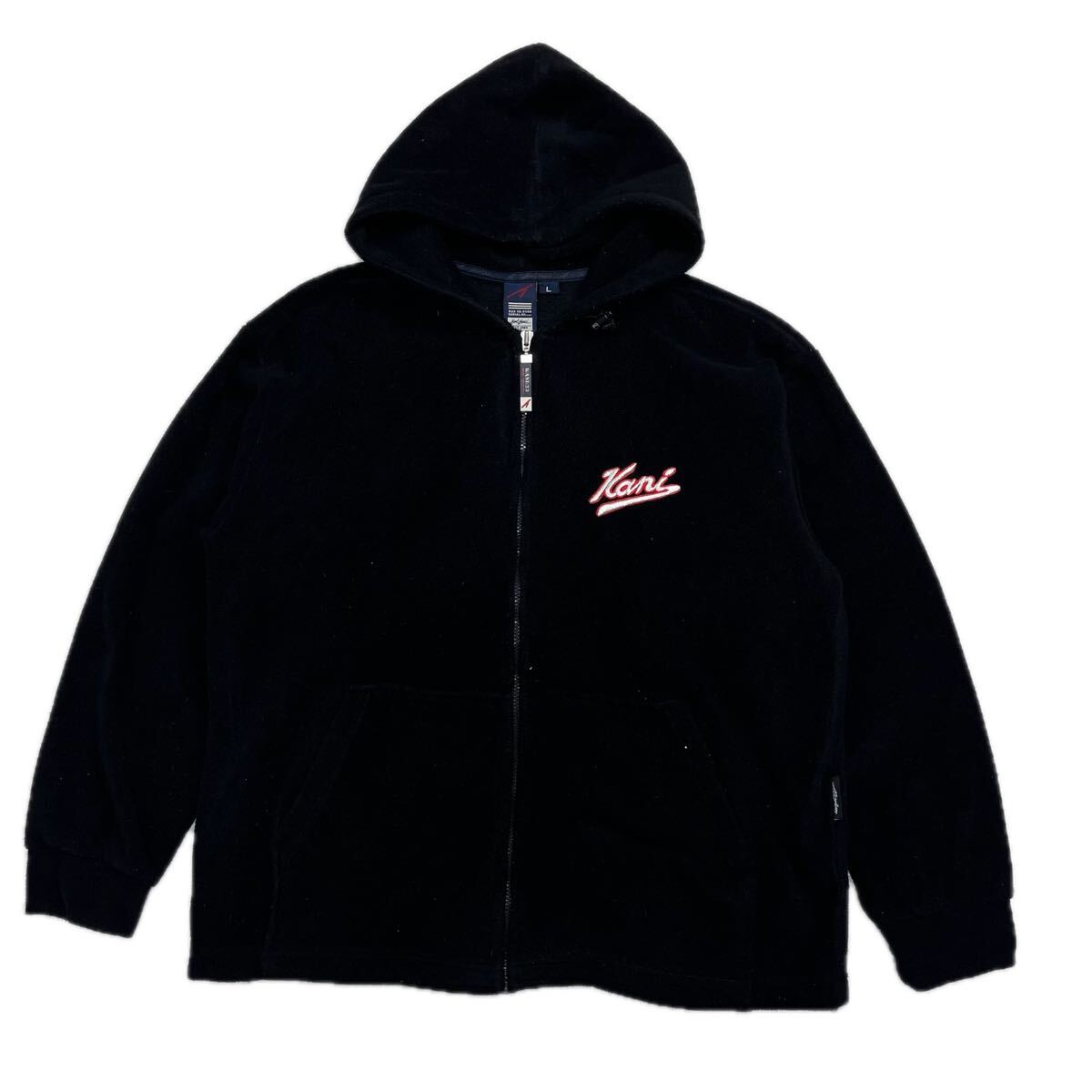 - Karl Kani カールカナイ ジップアップパーカー フリース ブラック オーバーサイズ ビッグサイズ メンズ Lサイズ
