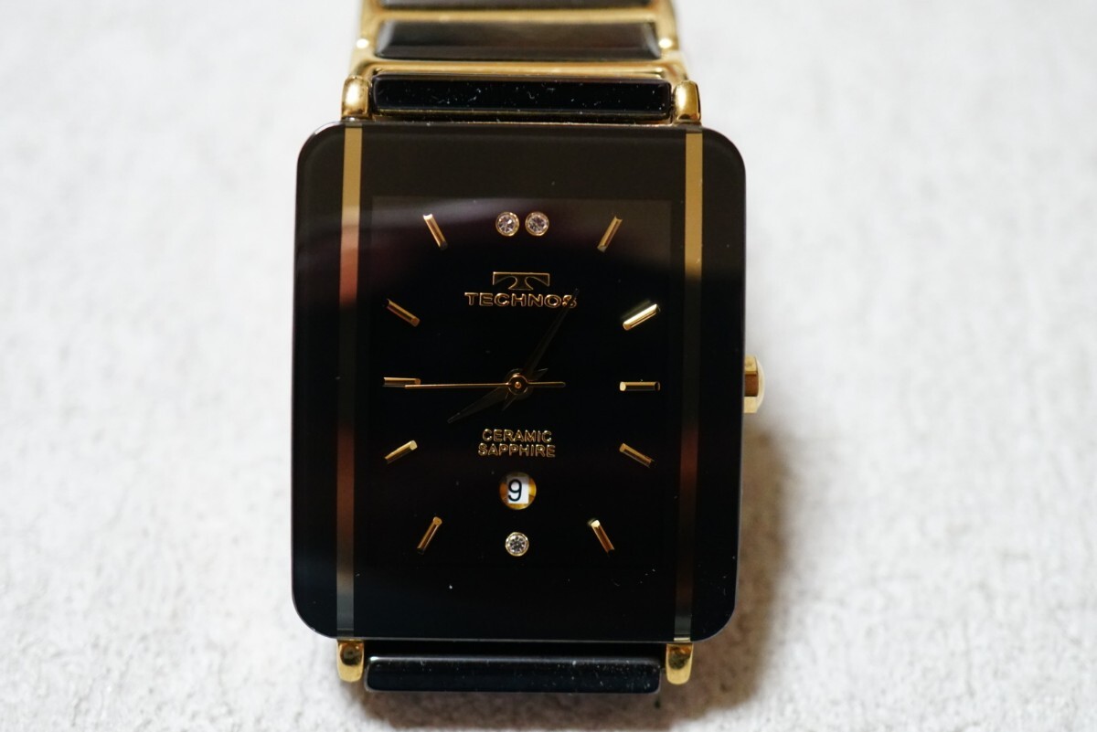 - F2088 TECHNOS/テクノス セラミック サファイアガラス 黒×ゴールド SWISS メンズ 腕時計 アクセサリー スイス ブランド クォーツ 不動品