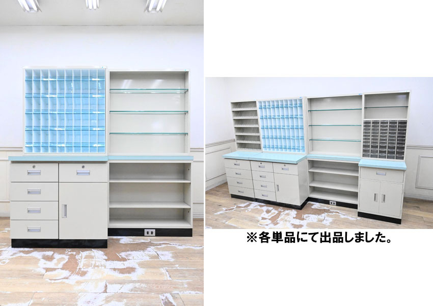 - FH151 SOLNO 医療棚 作業棚 病院 調剤台 保管棚 薬棚 ケビント スチール棚 キャビネット 金庫付 各単品にて出品
