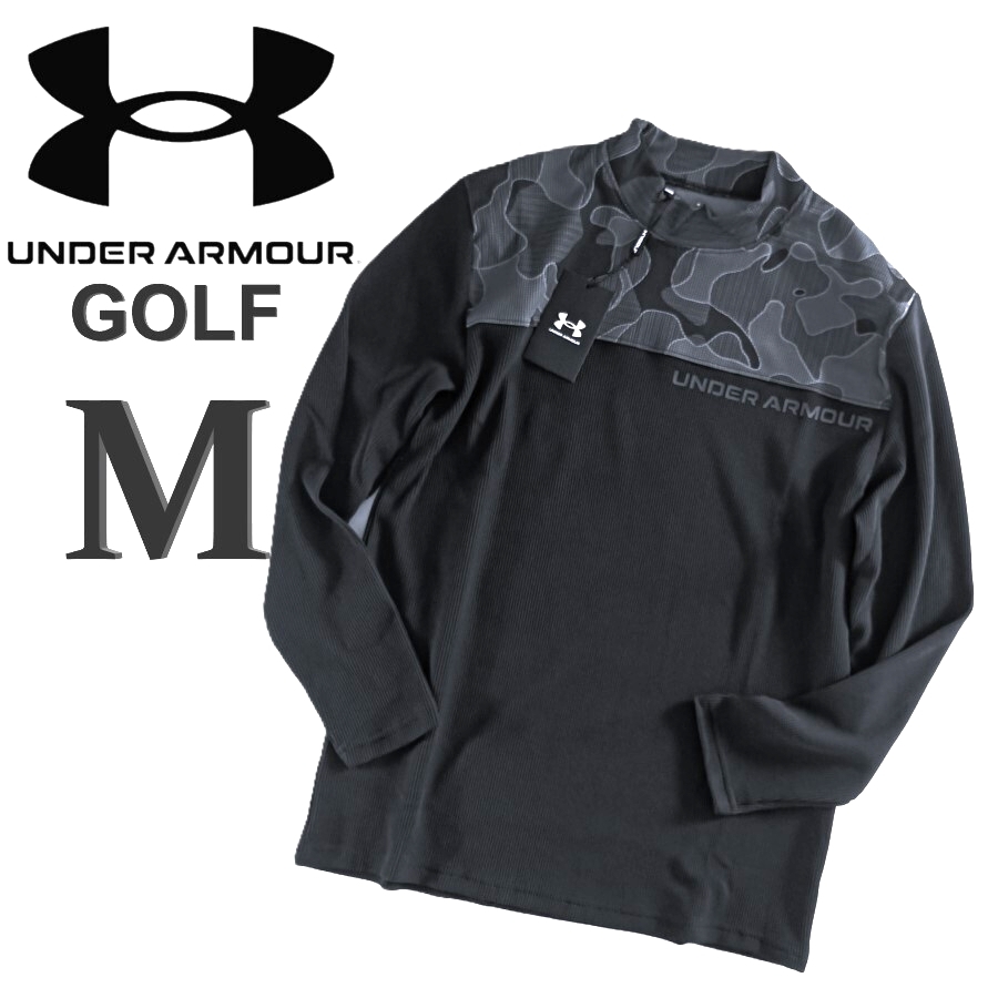 > 新品 黒 M アンダーアーマー メンズ ゴルフウェア 長袖 モックネック UNDERARMOUR GOLF